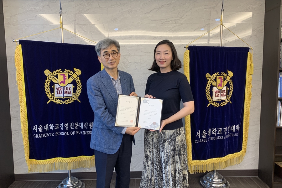 지난 9월 28일 박유경 동문(석사 12학번, 박사 14학번)이 서울대학교 경영대학에 발전기금 1백만 원을 출연했다.