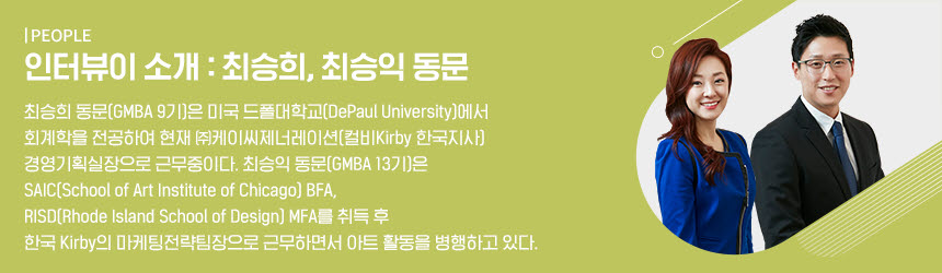 GMBA 14학번 최승희 동문과 그의 남동생이자 GMBA 18학번 후배인 최승익 동문을 만나보았습니다. 현실 남매답지 않은 남다른 케미로 다정하고 훈훈한 모습이 매우 인상 깊었던 두 동문을 소개합니다.