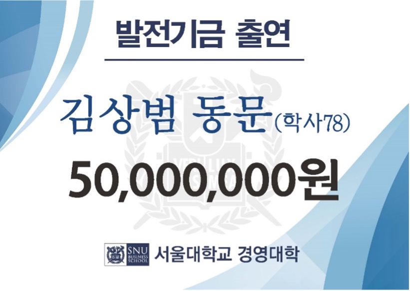 지난 4월 1일 이수그룹 김상범 회장이 서울대학교 경영대학에 발전기금 5천만 원을 출연했다.