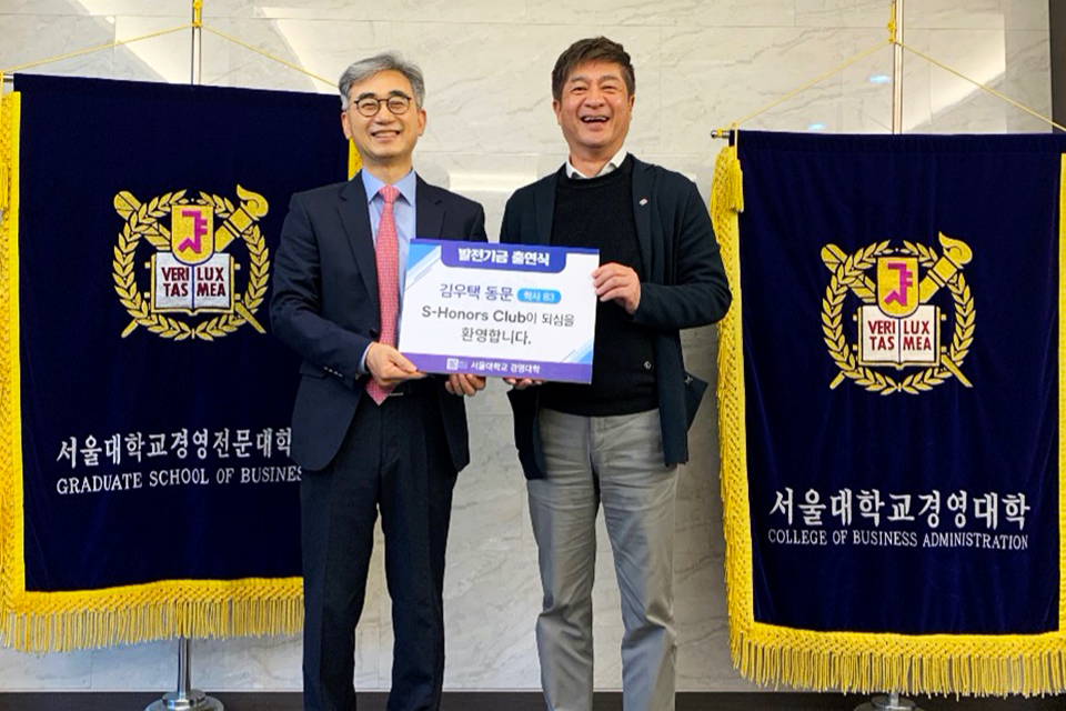 지난 4월 8일 김우택 동문(학사 83)이 서울대학교 경영대학에 발전기금 2천만 원을 출연했다.