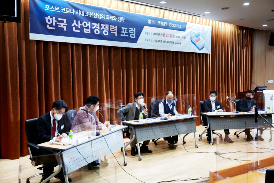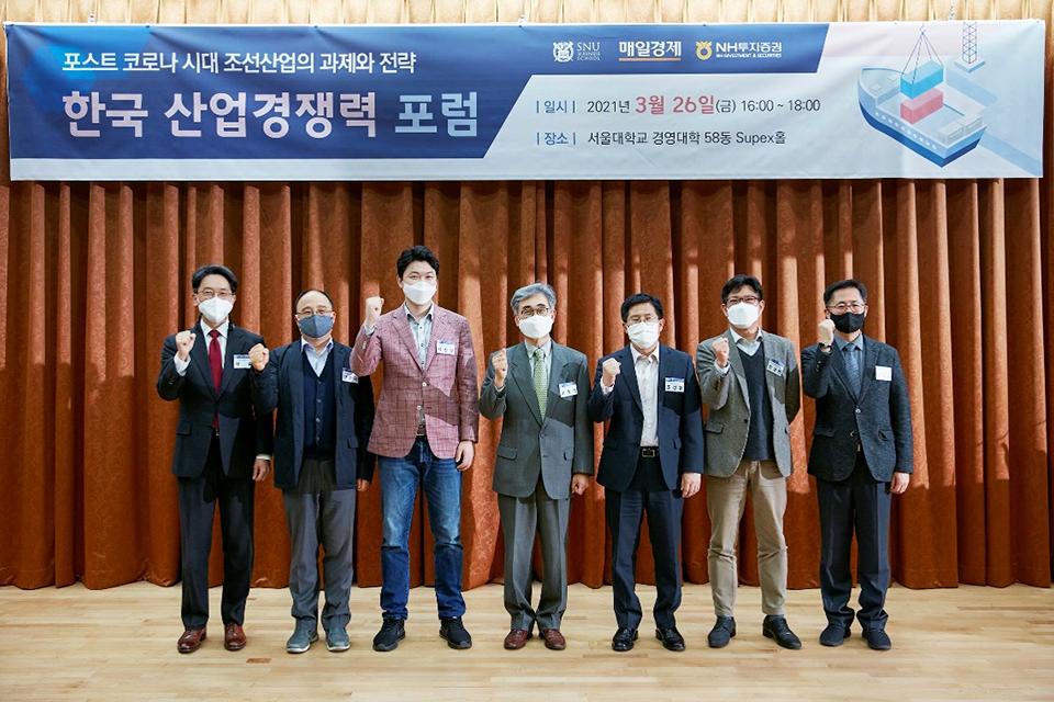 `포스트 코로나 시대 조선산업의 과제와 전략`을 주제로 열린 이날 포럼에는 조성헌 현대중공업 상무, 양종서 한국수출입은행 선임연구원, 최진명 NH투자증권 연구원, 김성현 조선해양플랜트협회 부장, 이유재 경영대학장, ·송재용·채준 서울대 경영대학 교수 등이 참석했다.