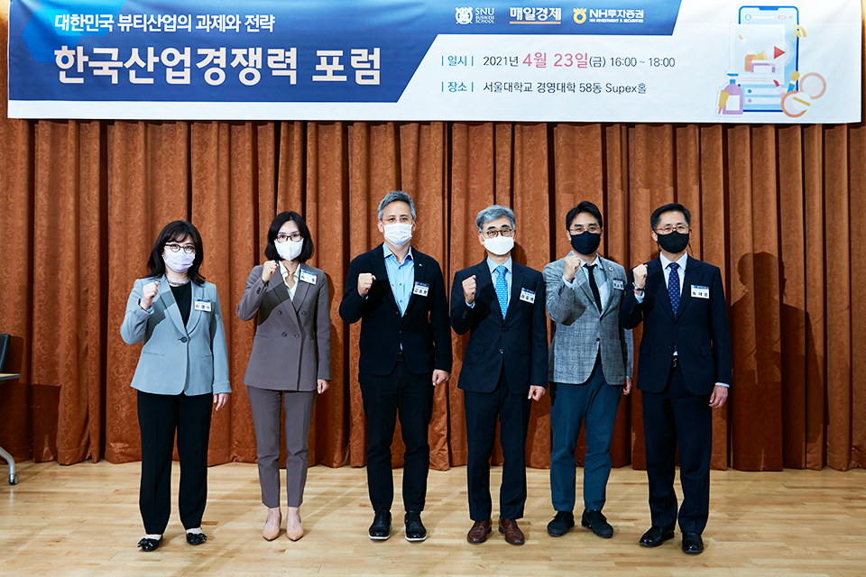 `포스트 코로나 시대 K뷰티`를 주제로 열린 이날 포럼에는 이유재 서울대 경영대학장의 인사 말씀을 시작으로, 이경미 서울대 경영대학 교수의 ‘포스트 팬데믹 혁신: 소비자 트렌드 변화, 브랜드 혁신’과 김승환 아모레퍼시픽그룹 대표이사의 ‘K뷰티 경쟁력과 미래’ 발표, 그리고 송재용 서울대 경영대학 교수, 서효주 BAIN & COMPANY 파트너, 이소형 비투링크 대표가 함께 토론하는 시간을 가졌다.
