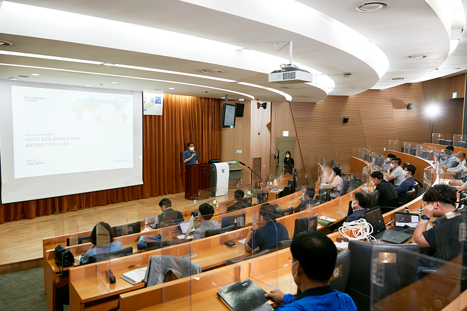 지난 6월 7일 서울대학교 경영대학 증권금융연구소는 ‘ESG 경영’을 주제로 포럼을 개최했다. 본 포럼에서는 전세계적으로 경제·경영·사회 전반에 걸쳐 이슈가 되고 있는 환경·사회·지배구조(ESG)에 대한 국내 산업계의 대응역량을 강화하고 관련 리스크 관리 및 정책지원 방법을 모색하고자 전문가들이 모여 관련 이슈에 대해 이야기하는 자리를 마련하였다. 이날 열린 포럼에서는 임대웅 ECO&PARTNERS 2℃ 대표, 나석권 SK사회적 가치연구원 원장, 류영재 서스틴베스트 대표가 패널 발표자로 참여해 활발한 토론을 진행했다.