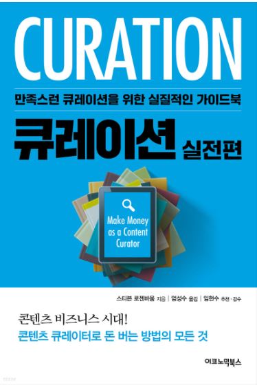 고객에게 보다 정확하고 체계적인 정보를 제공하기 위한 큐레이션 전략이 무엇인지를 알고 실무에 활용하는 방법을 찾기 위해 꼭 한번 이 책 [큐레이션 실전편 : 만족스런 큐레이션을 위한 실질적인 가이드북]을 읽어보길 권한다. 책 읽고 행복하시길.