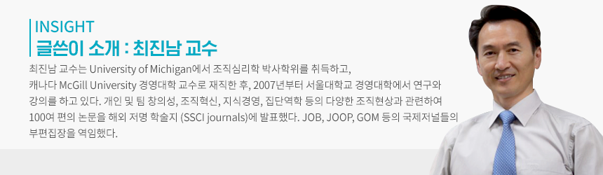 최근의 경영과 조직관리에 대한 논의에서 빠짐없이 거론되는 이슈는 상품, 서비스, 업무과정 등의 모든 경영활동과 관련한 혁신과 이를 위한 창의적 접근들이다. 구소련과의 냉전 종식 이후의 불확실한 세계정세에 대한 설명으로 등장했던 VUCA (volatility, uncertainty, complexity, ambiguity)라는 용어가 고스란히 경영환경의 변동성, 불확실성, 복잡성, 모호성에 대한 표현으로 원용되고 있는 현실을 고려하면 혁신과 창의성에 대한 기업들의 고민은 당연한 것으로 보인다.