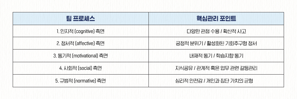 팀 프로세스 관리의 다섯 가지 측면