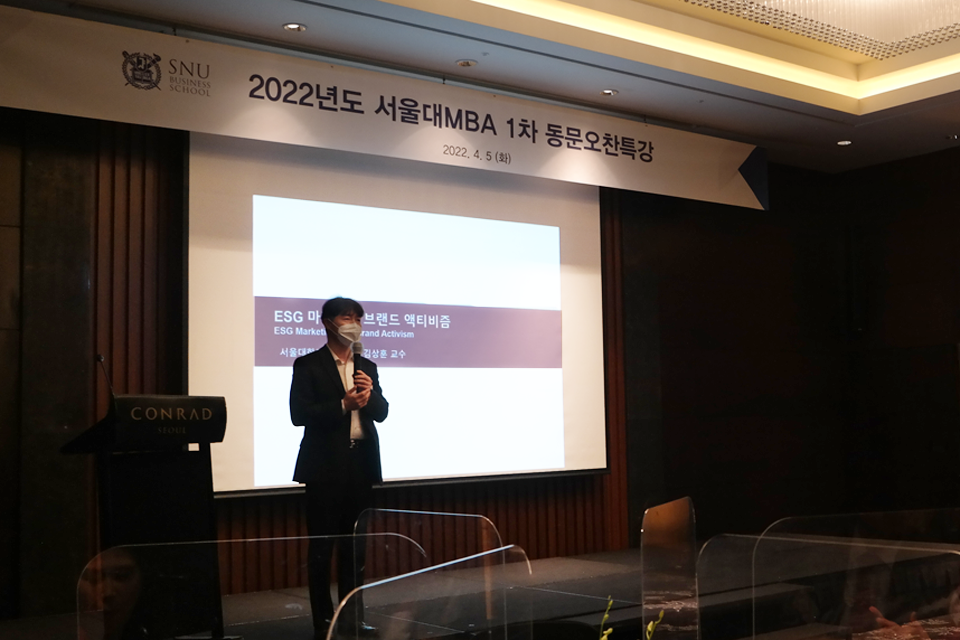 서울대학교 경영대학 양홍석 MBA 부학장이 행사 사회를 맡았고, 특강 교수진으로 자리한 서울대학교 경영대학 김상훈 원장은 “ESG마케팅과 브랜드 액티비즘”의 주제로 강의하여 동문들의 열렬한 호응을 받았다.