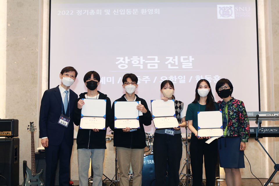 이번 행사에서는 EMBA 원우들이 결연을 맺어 정기적으로 후원하고 있는 성로원 출신 성년 학생들 4명에게 장학금을 전달하는 시간을 가졌다. 사회를 향한 선한 영향력을 실천하는 아름다운 EMBA 동문회의 모습에 참석한 동문들은 박수를 아끼지 않았다.