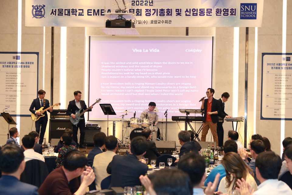 행사는 EMBA 공식 밴드 '엠바쏘울'의 12기 환영 공연을 끝으로 열렬한 호응과 함께 마무리되었다. EMBA 동문들은 “모두가 하나 되어 흥겹게 어우러지는, 잊지 못할 시간이었다”는 소감을 남겼다.