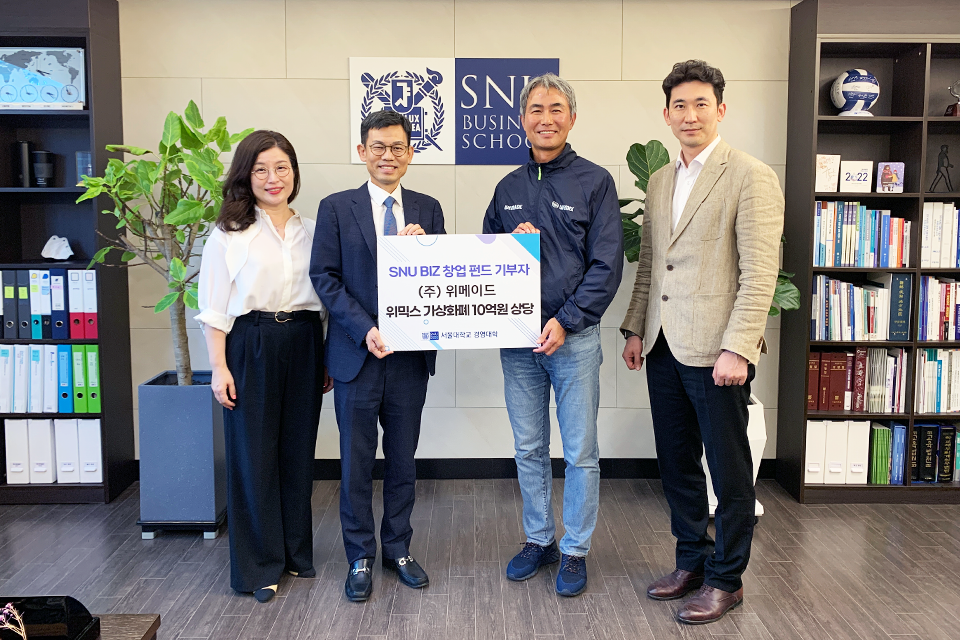 지난 7월 28일, 장현국 위메이드 대표는 서울대학교 경영대학을 방문하여 10억원 규모의 가상화폐 위믹스( WEMIX)를 기부하는 약정식을 체결했다. 이날 약정식에는 이경미 교수, 김상훈 경영대학 학장, 장현국 위메이드 대표, 이종섭 교수가 참석했다.