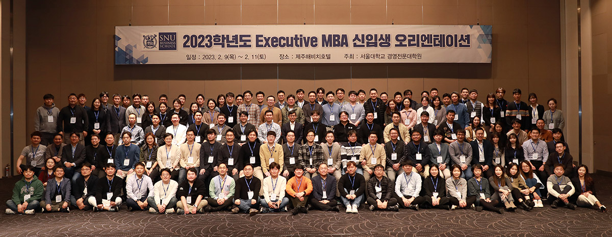 2023년 EMBA 15기 신입생 오리엔테이션이 2월 9일(목) ~ 2월 11일(금), 3일간 제주 해비치호텔에서 개최되었다. 코로나가 유행한 지 3년 만에 마스크를 벗고 서로를 대면할 수 있는 기회를 얻은 만큼 보다 활기찬 분위기로 진행되었다. 김상훈 경영(전문)대학(원)장을 비롯한 보직 교수진 그리고 EMBA 총학생회 및 총동문회까지 많은 인원이 참석하여 오리엔테이션 자리를 더욱 빛내주었다.
