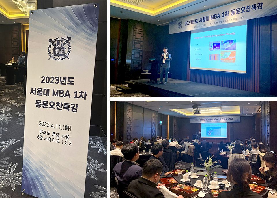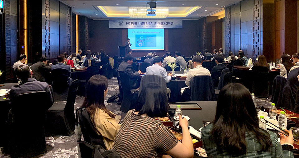서울대 경영전문대학원(원장 김상훈)은 지난 4월 11일, 2023년 서울대 MBA 1차 동문오찬특강을 실시하였다. 동문오찬특강은 EMBA, MBA 과정을 졸업한 동문들이 오찬을 함께 하며 서울대학교 경영대학 교수진의 강의를 수강하는 동문 행사로서, 바쁜 직장 생활 중에도 동문들을 만나고 마치 학교로 돌아간 것처럼 추억을 나눌 수 있어 경영전문대학원 동문들의 호응이 높은 행사로 자리매김하고 있다.