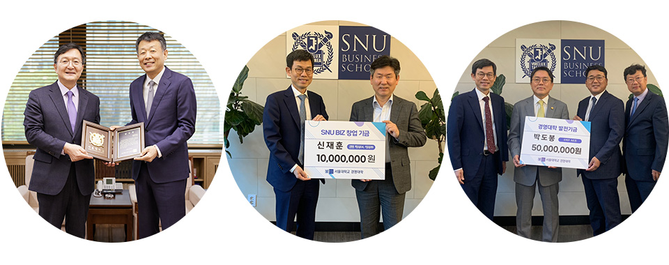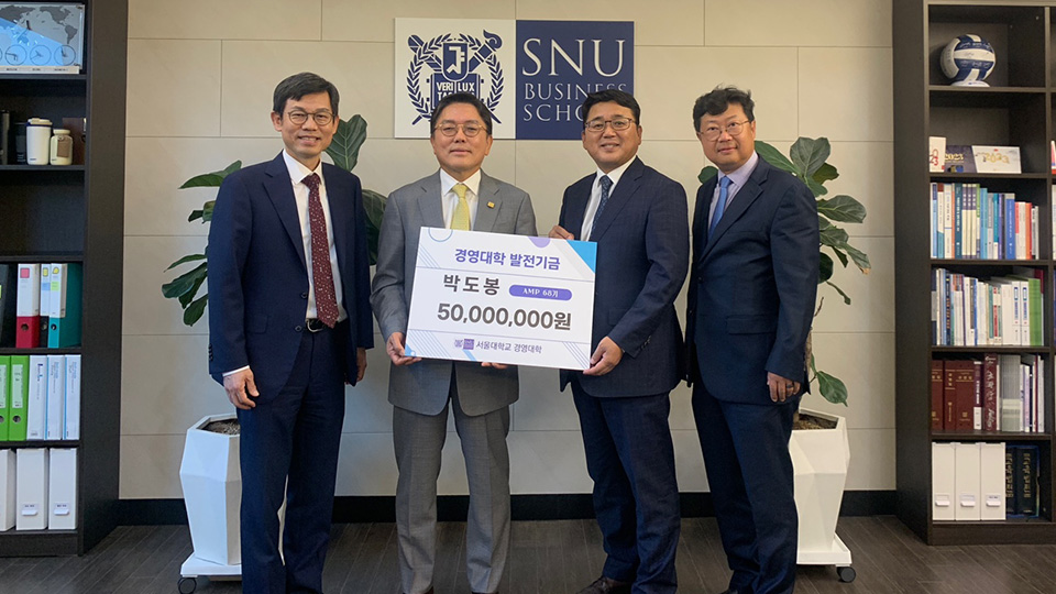 유홍림 총장은 “대학 발전과 후학 양성을 위한 대표님의 관심과 성원에 존경과 감사를 표하며, 기부해주신 기금은 서울대 경영대학이 미래를 개척하는 리더를 양성하는 데 소중하게 사용하겠다.”라고 감사의 마음을 전했다.