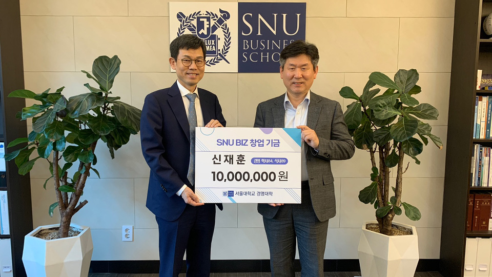 지난 5월 11일, 세아STX엔테크 대표이사 신재훈 동문(학사 84, 석사 89)은 서울대학교 경영대학을 방문하여 ‘SNUBiz 창업기금’에 천만원을 기부했다. 이날 기부금 전달식에는 신재훈 세아STX엔테크 대표이사와 김상훈 경영대 학장이 참석했다.