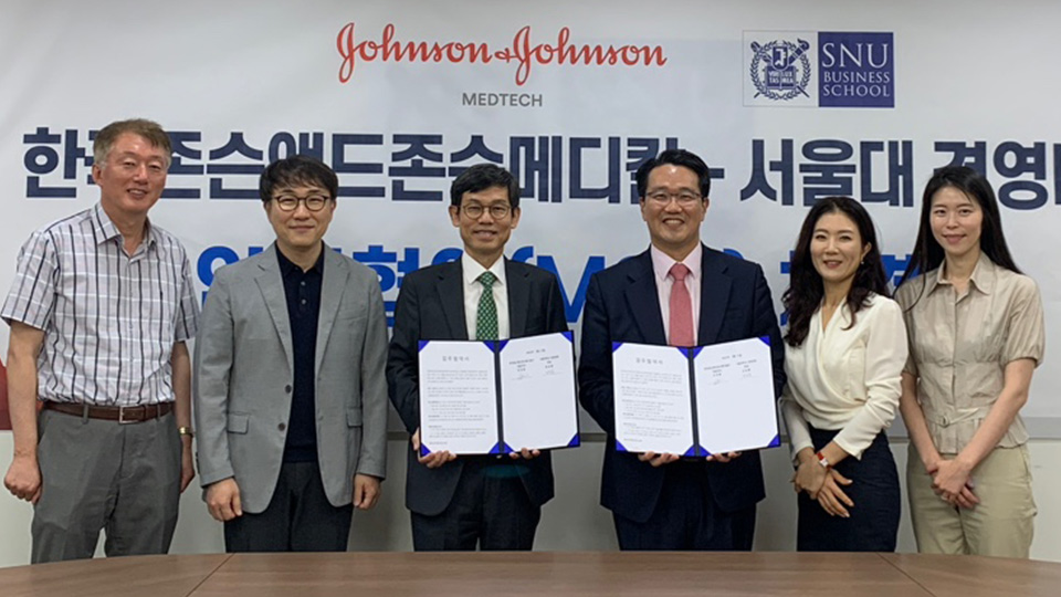 지난 7월 11일 서울대학교 경영대학과 존슨앤드존슨메드테크 코리아(Johnson & Johnson MedTech Korea)의 산학협력 업무협약식이 개최되었다. 이 날 협약식에는 오진용 존슨앤드존슨메드테크 북아시아 총괄 사장 겸 한국 대표와 김상훈 경영(전문)대학(원)장이 참석하여 존슨앤드존슨메디칼 임직원의 경영 역량 제고와 서울대학교 경영대학(원) 및 MBA 재학생들의 인턴십 기회 제공등 다양한 산학협력 프로그램을 진행하기로 약속했다.