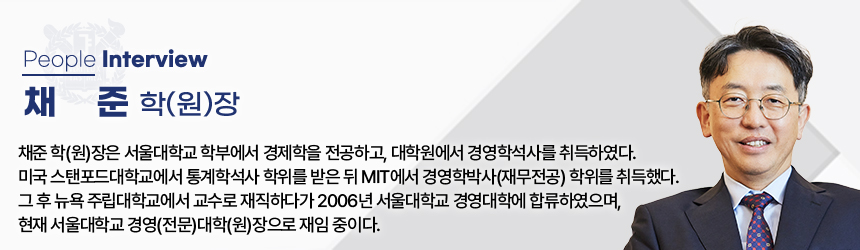이번 1월 23일부터 서울대학교 경영대학(원)장으로 일하게 된 채준입니다.