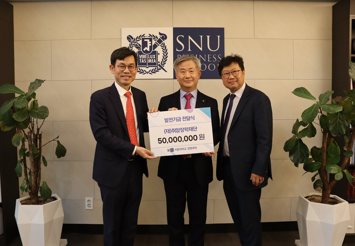 지난 15, 사조그룹의 장학재단인 ()취암장학재단이 서울대학교 경영대학에 5천만원의 발전기금을 출연했다. 발전기금 전달식에는 사조대림 김상훈 대표(서울대 AMP 68, ELP 1)와 서울대학교 경영대학의 김상훈 학장, 김우진 학생부학장이 참석했다. 김상훈 대표는 사조산업 관리본부장, 사조해표 총괄부사장을 거쳐 현재 사조대림 총괄사장직을 맡고 있다.