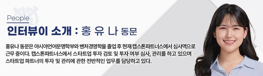 캡스톤파트너스는 벤처캐피탈 중 창업한지 3년 이내의 초기 단계 스타트업을 보는 기관이에요. 다른 벤처캐피탈 같은 경우에는 팀 별로 특화된 분야가 존재하는 경우가 많아요. 모두가 그런 건 아니지만, 바이오, AI 등으로 나눠져 있는 경우가 많은데 저희는 각각의 심사역들이 모두 전반적으로 많은 분야를 커버하며 본인이 진짜 흥미있는 분야, 전문성을 쌓고 싶은 분야를 찾아가는 스타일입니다. 그리고 작년부터는 초기보다 더 성장한 스타트업들도 많이 보고 있어요. 저희 하우스도 업계 경력이 꽤 오래되고 상장을 하는 등 여러 변화를 겪으면서 투자 단계를 다각화를 하는 단계에 들어서서 꾸준히 성장 중입니다.
