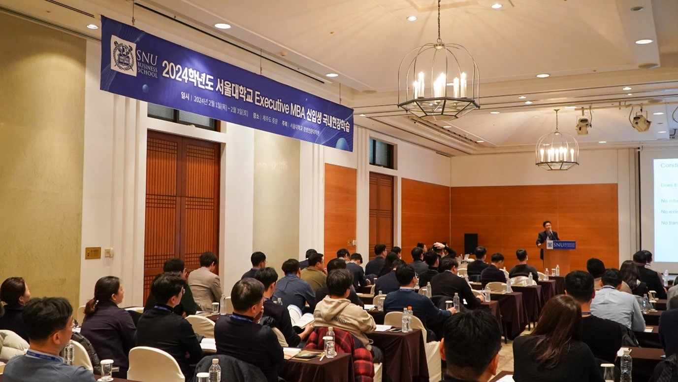 서울대학교 경영전문대학원은 지난 2월 1일(목)부터 2월 3일(토)까지 2024학년도 Executive MBA 신입생 국내현장학습을 개최하였다. 이번 일정은 제주도 중문에 위치한 신라호텔에서 2박 3일 동안 진행되었다.
