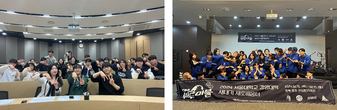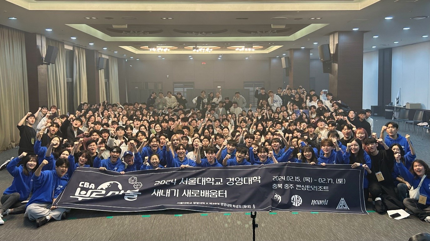 지난 2월 15일(목)부터 17일(토)까지 2박 3일간 서울대학교 경영대학 58동 및 충북 충주 켄싱턴리조트에서 24학번 신입생들과 재학생들을 대상으로 한 ‘2024 경영대 새내기 새로배움터’(이하 새터)가 개최되었다. 제38대 경영대학 학생회 [등대]의 주관으로 진행된 이번 행사는 24학번 신입생 145명, 재학생 72명, 공연 동아리원 59명, 새터준비위원회 31명의 학생들과 유병준 학생부학장이 참석하여 자리를 빛내었다.