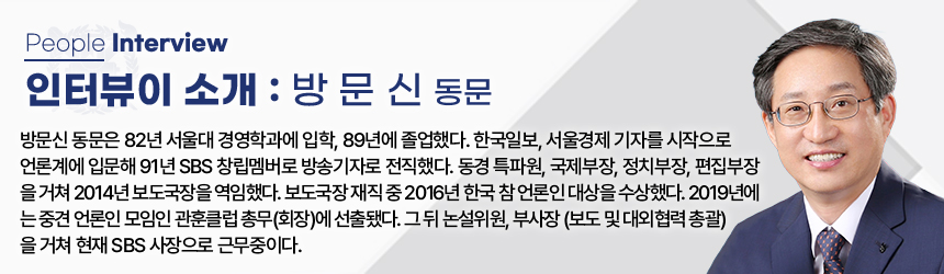 82년 경영대 입학 당시만 해도 언론인이 되겠다는 생각은 없었어요. 아마 그랬다면 경영대를 선택하지 않았겠죠. 경영대를 선택했던 것은 경영학이 실용 학문이라는 점, 대한민국의 미래는 기업이 만들어 낼 것이라는 막연한 느낌 때문이었는데 대학 4학년 때 생각이 좀 바뀌었어요. 사회에 조금 더 공헌할 수 있는 영역이 없을까 고민했었고 그 때 기자라는 직업도 괜찮겠다는 생각을 하게 됐어요. 80년대만 해도 요즘과 달리 이른바 정보라는 것이 제한된 사람만이 접근 가능했었고 많은 사람들은 그저 ‘카더라’라는 식의 미확인 정보에 만족할 수밖에 없는 시절이었거든요. 그런 사회적 갈증과 욕구가 있던 시대였던 만큼 제대로 된 정보, 사람들이 궁금해하는 진실을 전하는 직업, 즉 진실 전달자라는 사회적 역할이 매력적으로 다가왔어요. 그게 기자를 하게 된 출발점이었죠. 운 좋게도 첫 언론사 시험에 곧바로 합격했고요.