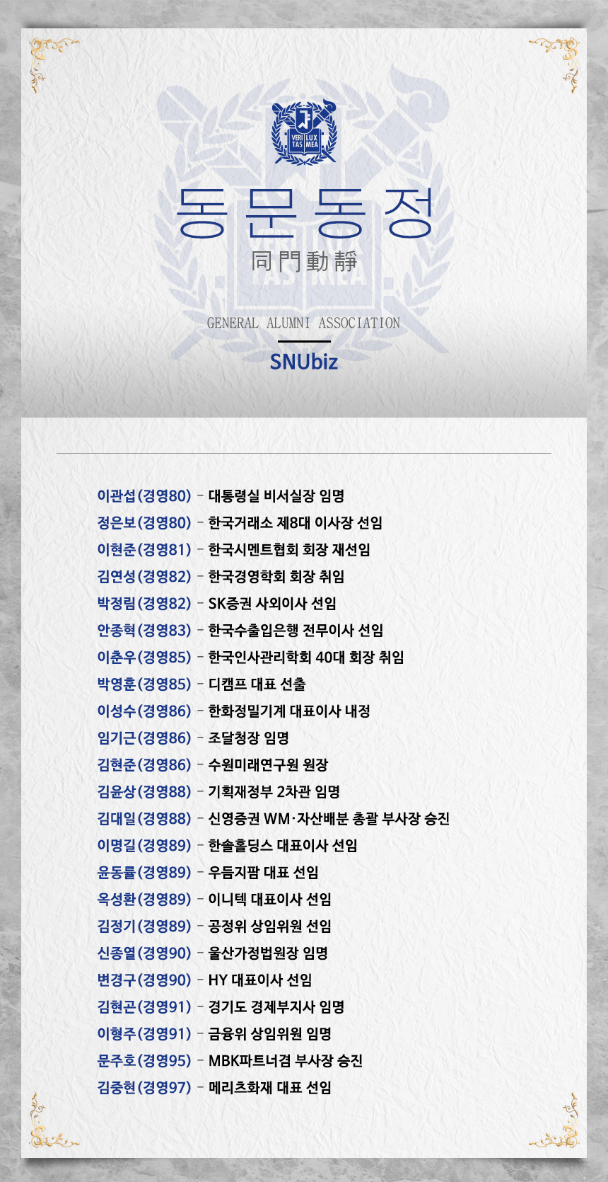 서울대학교 경영대학(원) 동문의 최신 동정입니다. (2024년 6월 기준)