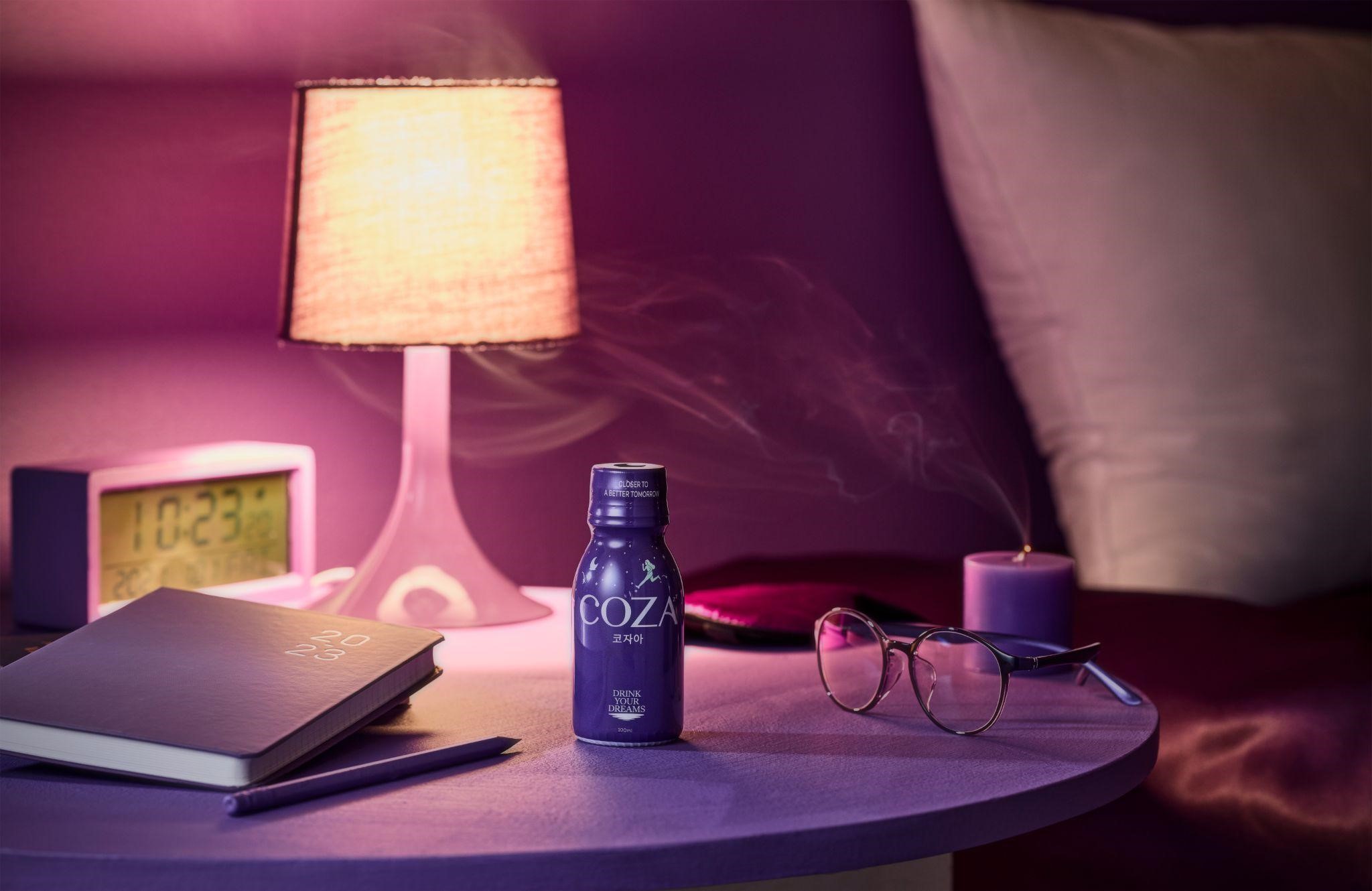 리브랜딩을 하면서 제품의 방향성도 재설정했습니다. 대부분 열정적이거나, 하고 싶은 일이 많거나, 무언가에 빠져있어서 수면에 어려움이 있다는 점을 알게 되었고 이런 사람들의 특징을 패키지 디자인에 반영하였습니다. 과거 ‘리체라’ 패키지는 달과 별이 뜬 밤하늘을 배경으로 여신 같은 캐릭터가 누워있고, “굿나잇Good Night” 이라는 메시지가 적혀있습니다. 그러나 이와는 대비되게 코자아는 채도와 명도를 올린 밝은 보라색 배경에 야광 빛 연두색으로 달리는 사람과 “너의 꿈을 마셔Drink Your Dreams”라는 메시지로 활기찬 내일을 위해 최상의 수면을 도와주는 느낌을 주었습니다. 이 외에 제품 성분은 자몽 성분을 먹을 수 없는 고혈압 환자들을 위해 자몽 맛에서 체리 맛으로 바꿨고, 출장길 비행기에서 먹고 싶다는 고객들을 위해 용량도 110ml에서 100ml로 줄였습니다. 용량은 줄었지만 제품 개선 과정에서 배합비율을 수정하여 수면 효과는 오히려 더 높아졌습니다.
