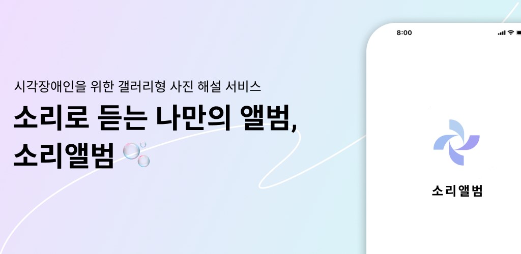 1) 소리앨범 플랫폼은 시각장애인을 위한 갤러리형 사진 해설 앱으로 사진에 대한 묘사를 듣고 싶을 때 소리앨범에 업로드하면 AI로부터 자세한 해설을 빠르게 받아볼 수 있어요. 이번 4월에 공식 어플리케이션으로 출시되었고 3일 만에 이용자수 120명을 돌파하여 안정적으로 성장하고 있는 사업입니다.