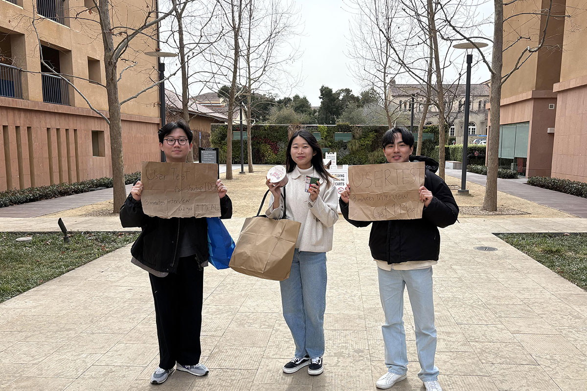 (김민균) 스탠포드 캠퍼스에서 컵밥을 들고 유저 인터뷰를 진행했던 때가 힘들면서도 의미 있었어요. 식비가 비싼 미국에서 ‘간편식 자판기’에 대한 수요가 있을지 검증해 보기 위한 프로토타입 테스트의 일환이었습니다. 저희 팀은 한국에서 준비한 컵밥 50개를 스탠포드 캠퍼스에서 나눠주며 직접 인터뷰를 시도했었습니다. 물리적으로 컵밥 50개를 가져가는 것도 쉽지 않았고, 낯선 환경에서 다양한 인종의 학생들에게 무작정 말을 걸어 인터뷰를 요청하는 것도 큰 도전이었어요. 스케치북에 인터뷰 요청 문구를 써서 들고 다니는 모습이 시위처럼 보였는지, 예상치 못하게 몇몇 사람들은 경계하기도 했고요. 마지막에 응해준 한 인터뷰이는 “분위기가 너무 딱딱해서 시위하는 줄 알았다”라며, “조금 더 재미있고 친근하게 접근하면 좋을 것 같다”라고 조언해 주기도 하더라고요. 이런 경험을 통해 문화적 장벽을 넘는 소통 방식의 중요성을 몸소 배울 수 있었습니다.