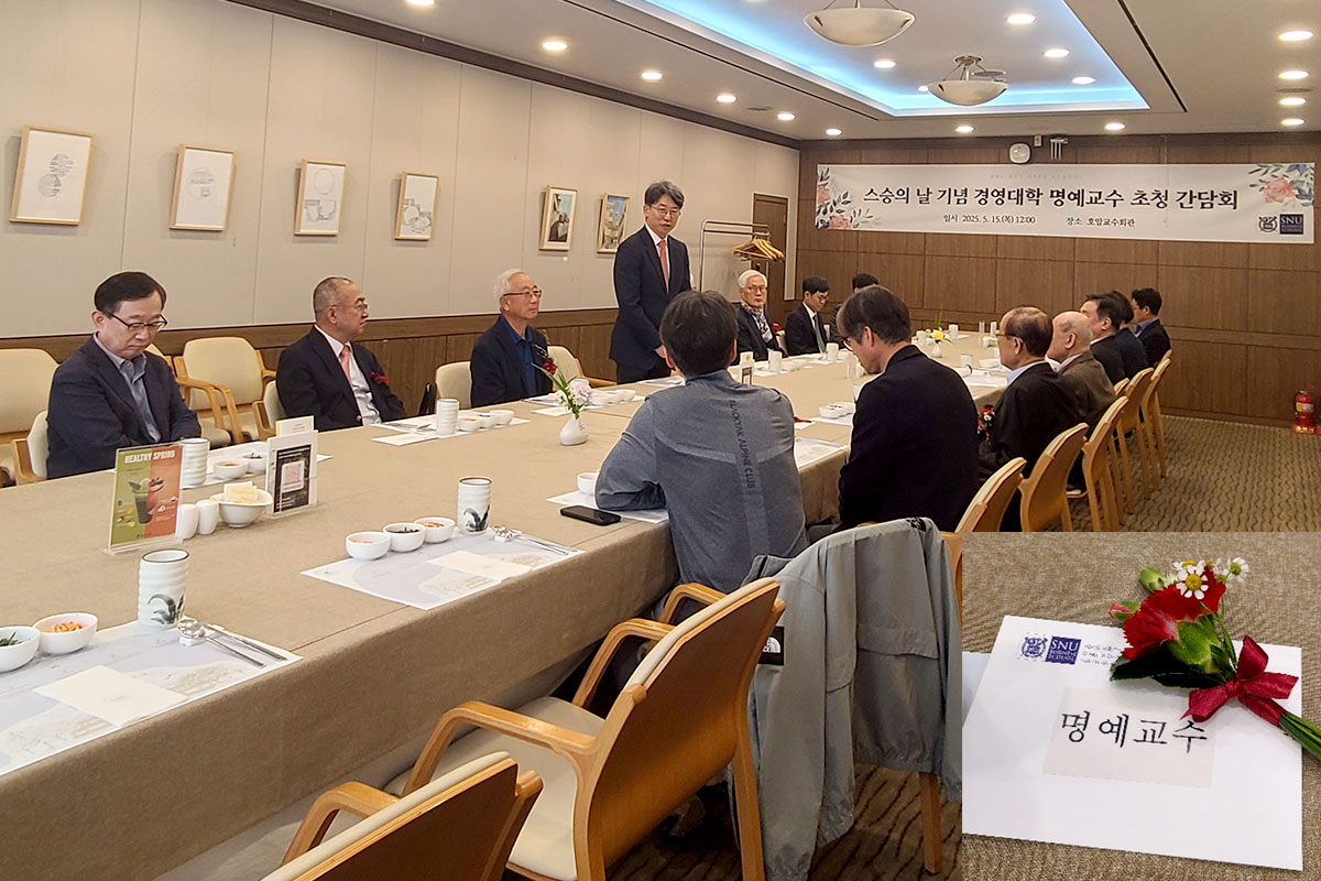 스승의 날을 맞이하여 지난 5월 15일(목) 2025년도 경영대학 명예교수 초청 간담회를 학내 호암교수회관에서 개최하였다.