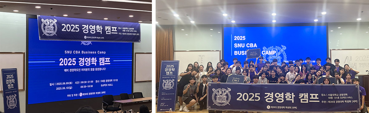 지난 8월 9일(토)부터 8월 10일(일)까지 양일간 서울대학교 경영대학 SUPEX HALL에서 전국 고등학생 멘티와 서울대학교 재학생 멘토 및 스태프가 참석한 [2025 경영학 캠프]가 성황리에 개최되었다.