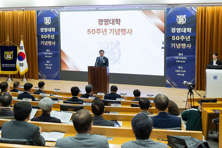 서울대학교 경영대학은 지난 11월 15일(토), 58동 수펙스홀에서 개교 50주년을 기념하는 행사를 개최했다. 이번 행사는 지난 반세기 동안 한국 경영교육을 대표하며 성장해온 경영대학의 역사적 발자취를 조명하고, 향후 50년의 비전과 핵심가치를 공유하는 자리로 마련되었다.
