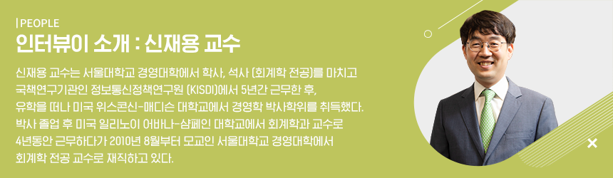 신재용 교수와 황인이 교수가 미국 Arizona State 대학의 조재현 박사과정과 프랑스 NEOMA 대학의 현정훈 교수가 공동연구한 “Compensation Consultant Fees and CEO Pay”논문이 미국회계학회에서 발간하는 학술지인 Journal of Management Accounting Research의 2020년 봄호에 출간 되었습니다. 논문 발표 후, The Financial Times, CFO Magazine, CPA Practice Advisor, Value Walk, and CFO Dive 등 해외 경제관련 언론에 본 연구에 관한 기사가 실리며 큰 관심을 이끌었는데요. 신재용 교수를 만나 자세한 이야기를 들어보았습니다.