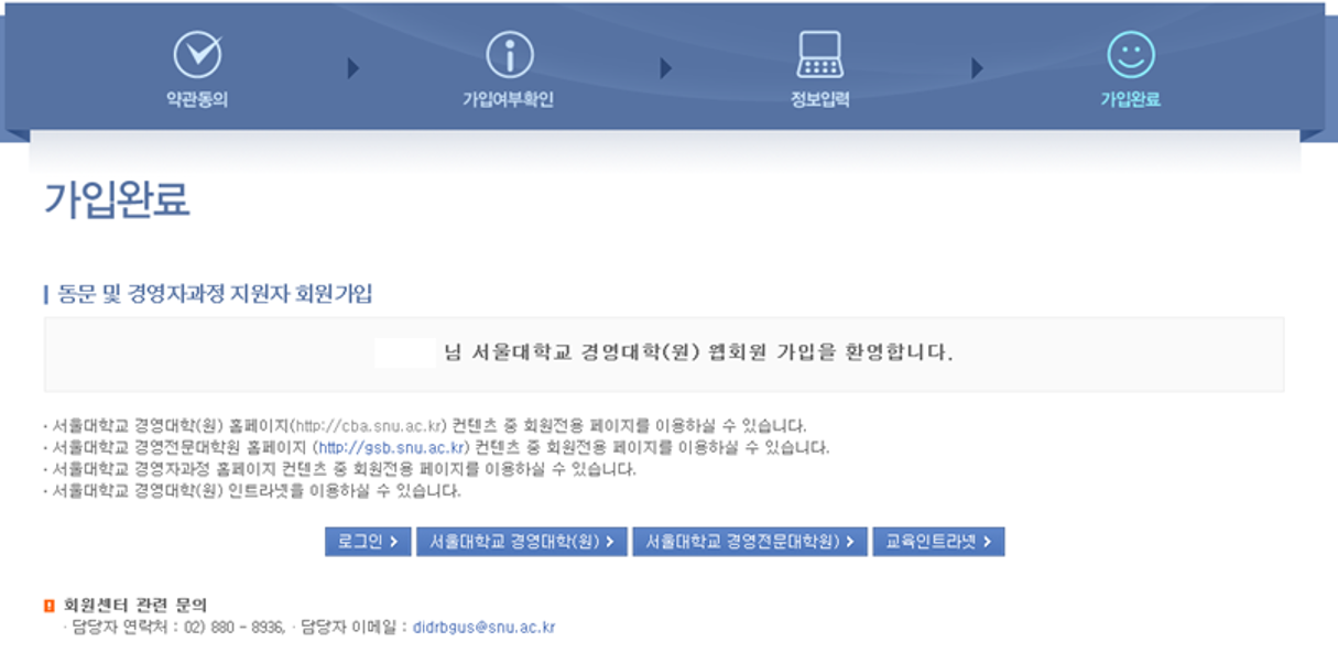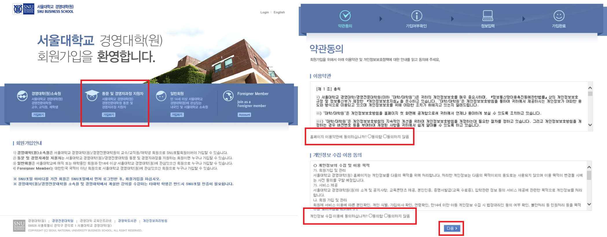 서울대학교 경영대학 홈페이지 회원가입 방법